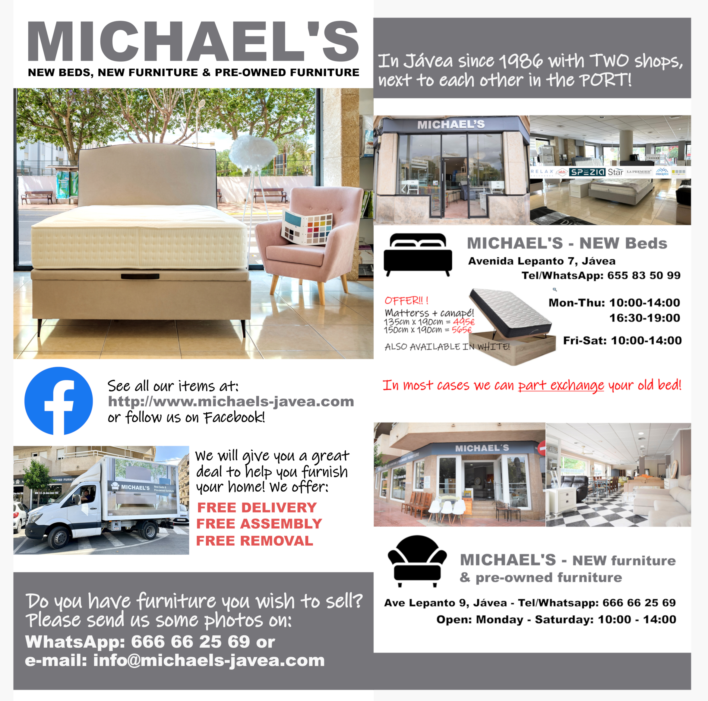 MICHAEL`S - TWO shops in the port! ("Side by side") NEW beds and Pre-owned furniture!